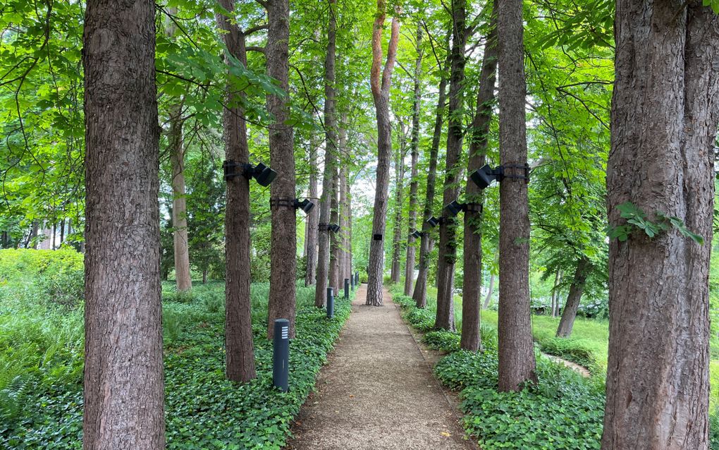 Aan het eind van de oprijlaan moet je om een ovaalvormig perk heen om bij de ingang van het huis te komen. Informatieborden geven alvast een nadenkertje mee: ”20 januari 1942. En vandaag?” En dan volgen actuele verklaringen van Joden over de invloed van de Holocaust en hun leven nu.