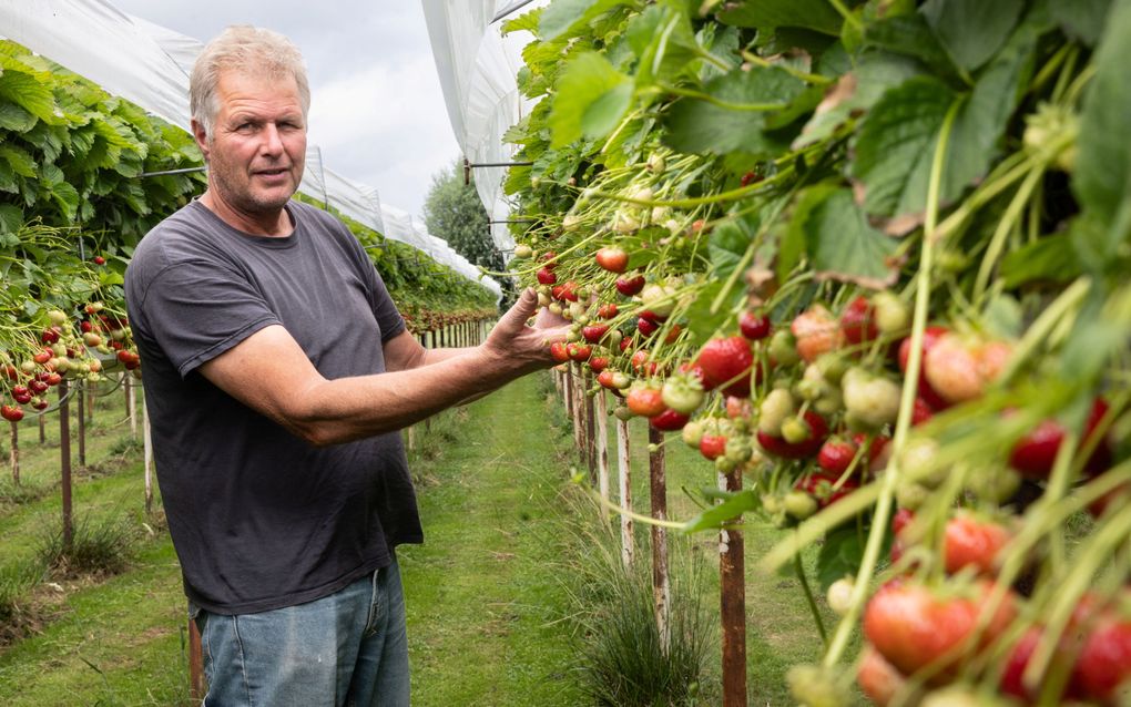 Geleidelijk aan worden steeds meer plantjes uitgezet, ook in de buitenlucht. Na zes tot acht weken hangen de eerste aardbeien eraan. Het oogsten gaat door tot omstreeks half december.”