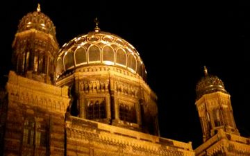 De Nieuwe Synagoge aan de Oranienburger Straße dateert uit de negentiende eeuw. In de Reichskristallnacht van 9 op 10 oktober 1938 voorkwam heldhaftig optreden van de Berlijnse politieman Wilhelm Krützfeld dat het imposante complex in vlammen opging.