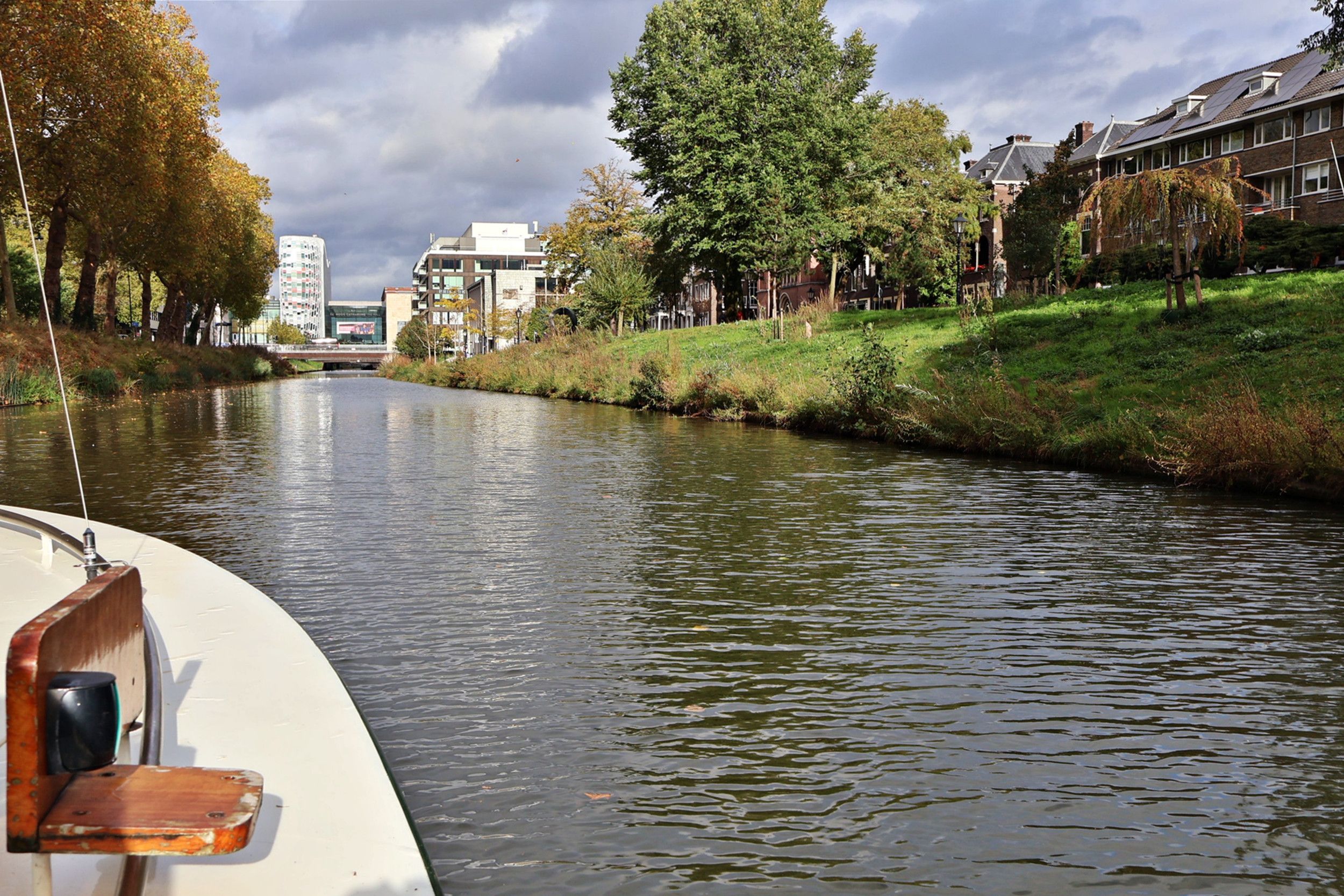 De aangekondigde vertrektijd van 11.00 ’s ochtends vanaf de Oudegracht in Utrecht lijkt makkelijk te halen, maar om duistere redenen rinkelt de wekker op vrije dagen minder nadrukkelijk dan wanneer de arbeid roept. Dus haasten we ons na een verlate aankomst vanaf het station door de straten van Utrecht. De wandelnavigatie werkt moeizaam tussen de hoge gebouwen en overkappingen, toch bereiken we enkele minuten vóór vertrek de locatie waar we moeten zijn.
