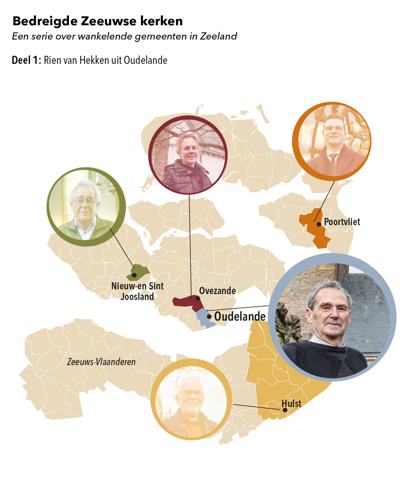 Vanwege de neergang van het ledental vormde de protestantse gemeente van Oudelande een federatie met Nisse, ’s-Heer Abtskerke, Hoedekenskerke en Driewegen. „Om elkaar te steunen en soms gezamenlijke diensten te houden. Dat lost het probleem niet op, erkent de voormalige fruitteler. „Met zo’n dienst zitten er hooguit vijftig mensen in de kerk. Daarvan is 80 procent boven de zeventig jaar.”