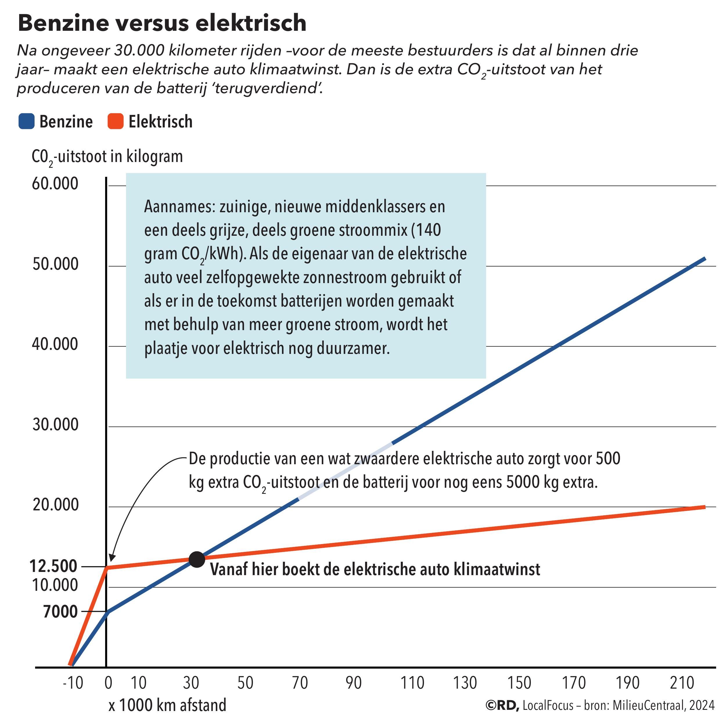 Feit is dat in de meeste gevallen een elektrische auto al na zo’n drie jaar voor klimaatwinst zorgt (zie grafiek). Zulke vergelijkingen over de hele levenscyclus van auto’s zijn al talloze keren door experts gedaan en daar komt elke keer ongeveer hetzelfde uit.