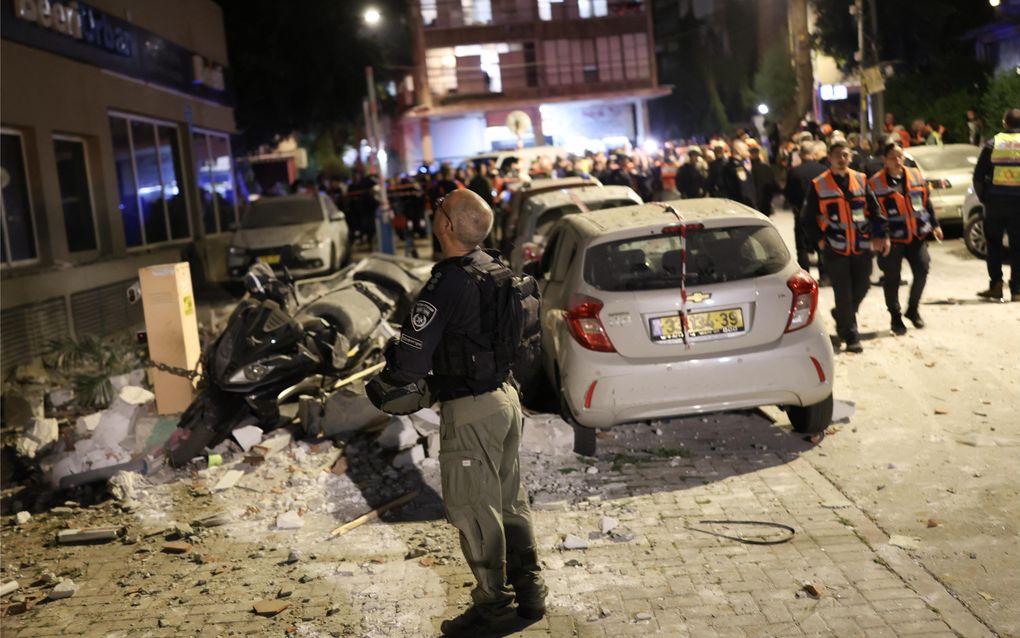 Uit de eerste onderzoeksresultaten komt volgens de politie naar voren dat een woongebouw in Ramat Gan, buiten Tel Aviv, is geraakt met clustermunitie. Dergelijke wapens verspreiden explosieven over een groter gebied en zijn daarom omstreden.