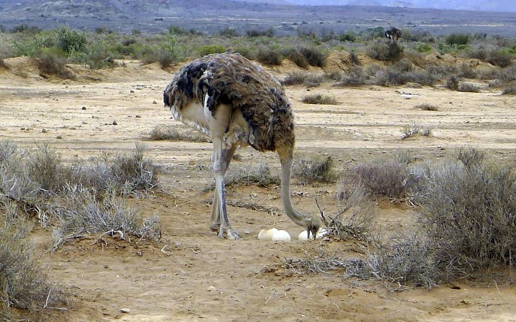 Overal tekent het markante silhouet van de struisvogel het landschap van de Klein Karoo: het mannetje zwart gevederd, het vrouwtje bruin. Jaarlijks reizen duizenden toeristen naar Oudtshoorn, dat bekendstaat als de struisvogelhoofdstad van Zuid-Afrika.