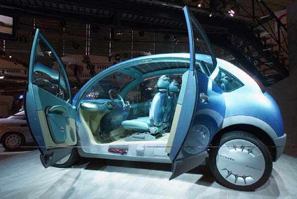 Citroen C3. Gaat zo de nieuwe eend eruit zien? Evenals bij het oude lelijke eendje zit de schakelpook aan het dahsboard.