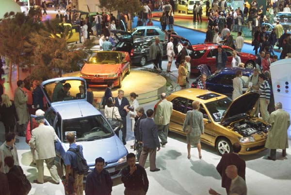 Auto's en mensen ontmoeten elkaar in Parijs.