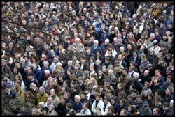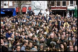 Na de vrijwel spandoekloze protestbijeenkomst die de aandacht had van veel media ook uit het buitenland trokken de duizenden tegenstanders van de euthanasiewet over het Binnenhof langs het gebouw van de Eerste Kamer. Burgemeester Deetman gaf op het laatste moment opnieuw toestemming over het Binnenhof te lopen. Het grote aantal deelnemers was voor hem eerder reden zijn toestemming in te trekken.Op het Binnenhof protesteerden wat kleine geschminkte groepjes tegenstanders van euthanasie met spandoeken tegen de wet. Op verzoek van de politie verlieten zij later het plein voor de Eerste Kamer.