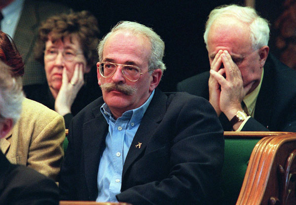 DEN HAAG Voormalig El-Al-werknemer J. Plettenberg (m.) luistert samen met andere betrokkenen bij de Bijlmerramp naar de verklaring van brigadier D. Nix. De verklaringen van beide heren vertoonden belangrijke verschillen.