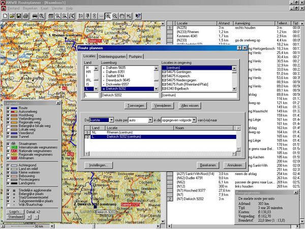 | Route 66 Routeplanner Europa van Stad naar Stad ANWB Routeplanner Europa. Gebied: Europa, 450.000 steden; plant route tussen: plaatsen, bij grote steden ook postcodegebieden; detaillering: goed; routes: kortste, snelste, goedkoopste, zuinigste; tussenstops: onbeperkt; instelling kleuren: ruim; instelling snelheden: ruim; kostenberekening: ja, ruime instelling; snelheid: redelijk; prijs: 99,95 (ANWB en Route 66) |