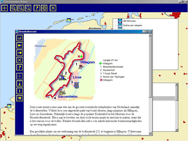 Als het aan softwarebedrijven ligt, is voor leuke dagje-uit-tips geen VVV-bezoek meer nodig. Zilveren schijfjes vol toeristische informatie brengen de digitale VVV tot in de huiskamer. Illustratie: de AND Fietsroutewijzer.