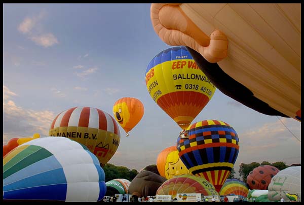 | BARNEVELD Duizenden mensen zagen gisteravond meer dan dertig luchtballonnen opstijgen tijdens het Schaffelaar Ballonfestival in Barneveld. Vanavond en morgenavond wordt eenzelfde programma afgewerkt. Het geld dat overblijft, gaat naar de door mkz getroffen boeren in Kootwijkerbroek en een nieuwe woonvoorziening voor gehandicapten in Barneveld.