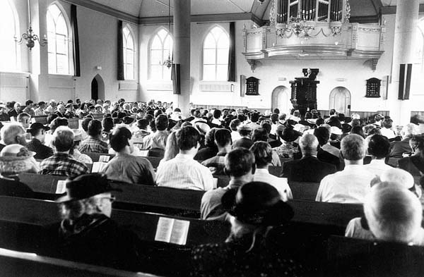 | Op de agenda van iedere kerkenraad in een gemeente die meer dan 600 leden telt zou mogen staan: bezinning op het tijdstip van splitsing. Niet omdat een kleine gemeente automatisch meer levend en geestelijk is, maar om ontsnappingsmogelijkheden uit de persoonlijke roeping van de leden af te houden. En die hebben we in grote gemeenten gecreëerd.