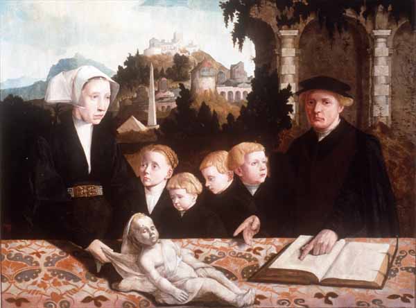 | Tegen het leven na de dood wordt verschillend aangekeken: de ideeën variëren van hemel tot hel, van een leeg niets tot reïncarnatie. Of patiënten na hun overlijden werkelijk minder lijden dan daarvoor, onttrekt zich aan wetenschappelijke beoordeling. Het effect van euthanasie op het lijden is fundamenteel onmeetbaar. Illustratie: een anonieme schilder legde rond 1535 het overlijden van een kind in het gezin van Ivo Fritema vast. |