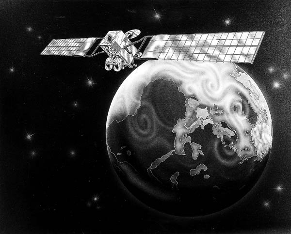 | Vanavond zal de tijdelijke commissie Echelon van het Europees Parlement in Straatsburg stemmen over een resolutie inzake het afluistersysteem Echelon. De Engelstalige landen worden beschuldigd dit wereldwijde systeem voor het onderscheppen van satellietcommunicatie te gebruiken om hun bedrijven te bevoordelen bij het verkrijgen van orders. Illustratie: Schets van een satelliet rond de aarde.