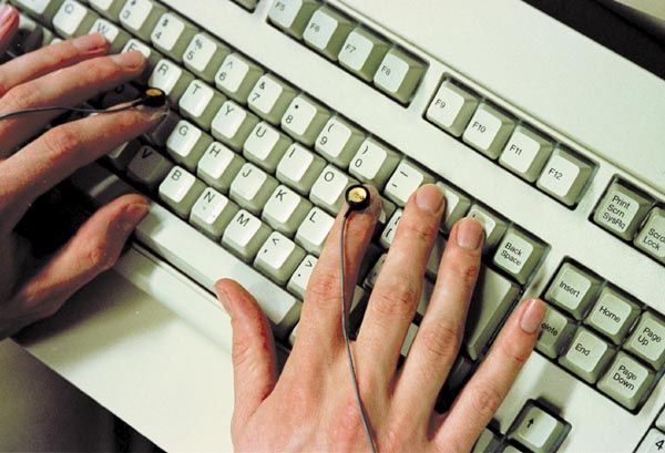 | Een muisarm, beter aangeduid als RSI, wordt niet alleen veroorzaakt door een slechte bureaustoel. Een hoge werkdruk, lawaai op de afdeling, weinig mogelijkheden om het werk even te onderbreken en andere psychosociale factoren spelen eveneens een belangrijke rol. De Nijmeegse hoogleraar Van Galen bestudeert de invloed van stressfactoren op de spierspanning in de arm. Een camera volgt de bewegingen van de vingers, dankzij kleine lampjes die op de nagels geplakt zijn.