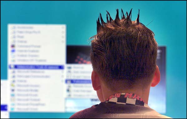 | UTRECHT Een bezoeker van de ICTjongerenmanifestatie verdiept zich in een Internetsite. Ongeveer vierhonderd leerlingen uit het primair en voortgezet onderwijs gingen gisteren in de Expohal van de Jaarbeurs aan de slag met onderwijstoepassingen, waarvan velen doorhen zelf ontwikkeld.