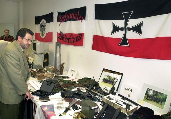 | DRESDEN Bij huiszoeking bij extreem rechtse groeperingen heeft de Duitse politie tal van spullen in beslag genomen, waaronder computers, software en handgeschreven documenten. De Duitse president Johannes Rau heeft opgeroepen wetten te maken om het rechtsradicalen onmogelijk te maken hun gedachten via internet te verspreiden. Op een internationale conferentie in Berlijn vroeg Rau maandag internetaanbieders een systeem van zelfcontrole in het leven te roepen. Wij moeten niet toelaten dat internet steeds meer door democratieverachtende organisaties en tegenstanders van de menselijke waarden wordt gebruikt, zei Rau.