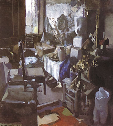 Kees Verwey, 'Atelierinterieur', 1974, olieverf op doek, 200 x 180 cm, eigendom gemeente Haarlem |