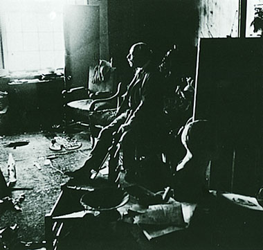 Mondriaan in zijn atelier voor 'Compositie met gele