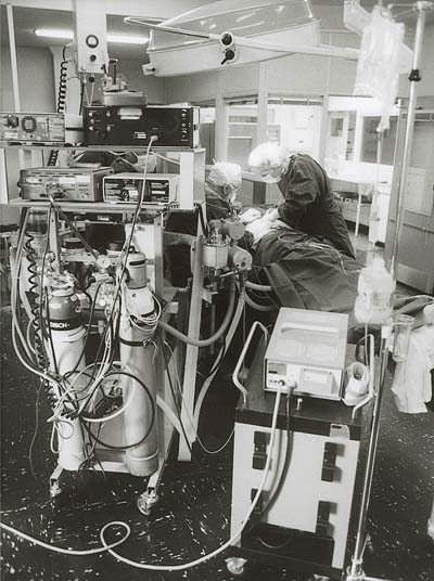 ![]() | Gedurende eeuwen moeten lijders aan lichamelijke kwalen die bij een chirurgijn komen het voor de pijnbestrijding hebben van opium en zwaar alcoholische dranken. Zo krijgen Britse zeelieden op hun oorlogsschepen geconcentreerde rum mee voor het geval er na een zeeslag een ledemaat moet worden geamputeerd. Daarin lijkt een keer te komen als de Engelse chemicus David Priestley in 1793 lachgas (distikstofoxide of N2O) uitvindt. Lachgas wordt nog altijd gebruikt in de moderne anesthesie, in combinatie met zuurstof. |
