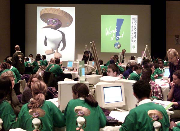 | DEN HAAG Ongeveer 150 jongeren uit zeventig landen nemen deel aan de Youth Meeting van de VN-wereldklimaattop. Gezamenlijk werken ze aan een jongerenadvies dat aan de voorzitter van de conferentie, de Nederlandse minister Pronk, wordt aangeboden. Een afvaardiging van de jongeren mag ook aan de vergaderingen van de topconferentie deelnemen.