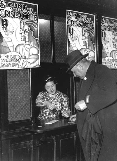 ![]() | De grote crisis van de jaren dertig treft ook de Nederlandse economie zwaar. Op allerlei manieren tracht men hulp te bieden aan werklozen en anderen die hun inkomen drastisch zien teruglopen. De PTT geeft crisispostzegels uit waarvan de toeslag ten goede komt aan het Crisiscomité. |