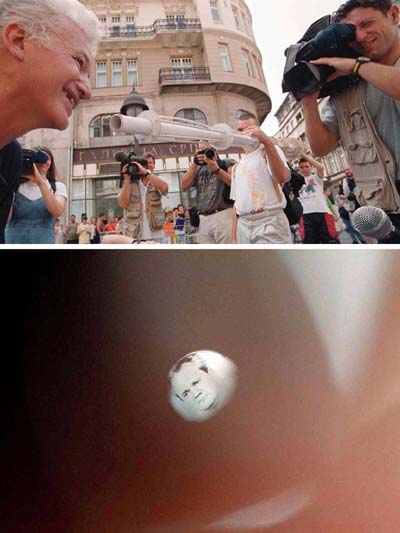 Studenten in Belgrado nodigen toeristen uit te komen kijken naar een 'vallende ster'. Aan het eind van een lange telescoop hebben ze een portret van de Servische president Milosevic geplakt.