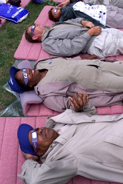 Bezoekers van de Space Expo in Noordwijk tijdens een ligconcert.