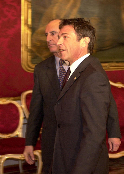 WENEN De leider van de ÖVP, Jörg Haider (r.), maakte gisteren zijn opwachting bij president Thomas Klestil van Oostenrijk voor een gesprek over de mogelijkheid van een coalitie met de ÖVP.