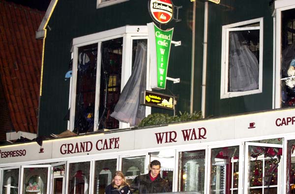 VOLENDAM Gordijnen wapperen in de wind in café Het Hemeltje. Achter de ramen zijn getraliede hekken aangebracht.