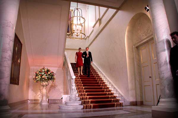 DEN HAAG Het verloofde koninklijke stel komt de trappen van Paleis Noordeinde af.