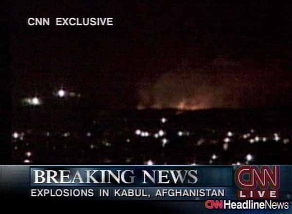 KABUL Televisiebeelden van de raketaanval die afgelopen nacht plaatsvond op de Afghaanse hoofdstad Kabul. De aanval is opgeëist door de rebellen, nadat eerst werd vermoed dat het een vergeldingsaanval van de VS betrof.
