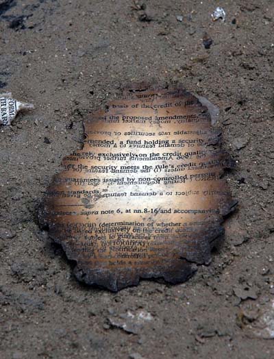 NEW YORK Een verbrand document, afkomstig uit het WTC, verdwaald op het asfalt in Manhattan.