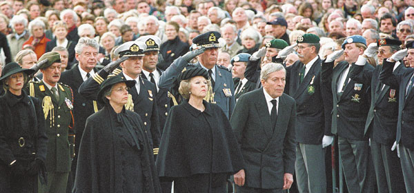 Koningin Beatrix en prins Claus passeren de erewacht op de Dam.
