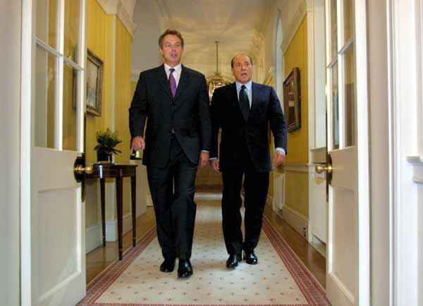 | LONDEN De Britse premier Tony Blair (l.) en zijn Italiaanse ambtgenoot Silvio Berlusconi ontmoetten elkaar gisteren in Blairs ambtswoning. Zij bespraken daar de Europese rol binnen het geheel van Amerika's opstelling ten opzichte van aanslagen.