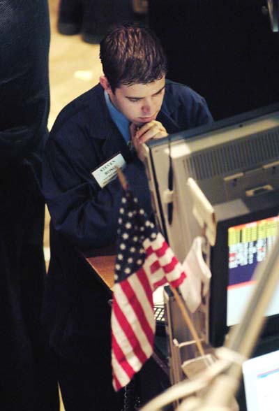 ![]() | NEW YORK Een medewerker van de beurs in New York pauzeert op het moment dat Amerika een minuut stilte in acht neemt ter nagedachtenis aan het feit dat rond deze tijd precies een week geleden twee gekaapte vliegtuigen zich in de torens van het WTC boorden.