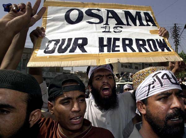 KARACHI Leerlingen van een islamitische school in Karachi maken duidelijk dat Osama bin Laden hun held is.
