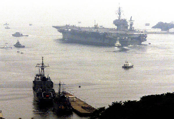 | YOKOSUKA (Japan) De USS Kitty Hawk vertrok gisteren van de Amerikaanse marinebasis Yokosuka, zo'n 30 kilometer ten zuidwesten van de Japanse hoofdstad Tokio. Het vliegdekschip moet zich gereedmaken voor vergeldingsaanvallen tegen de Taliban.
