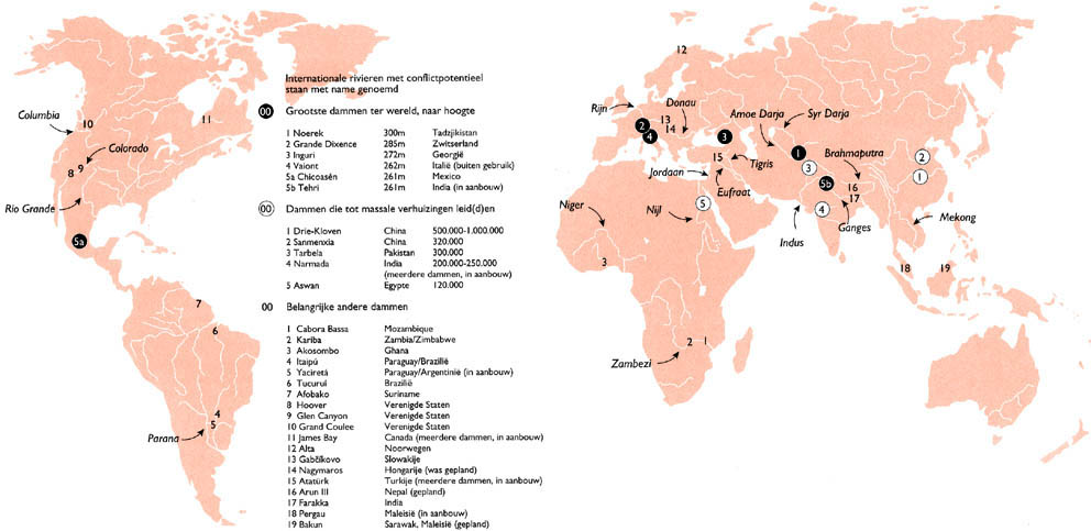 Wereldwijd zijn er meer dan 40.000 grote stuwdammen en zo'n 800.000 kleine. Deze kaart geeft een overzicht van de grootste projecten.