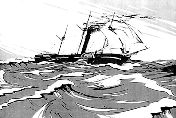 Tekening van de Ferdinando Primo, een van de eerste Europese stoomboten. Het schip onderhield van 1818 tot 1828 een dienst tussen Napels, Livorno, Genua en Marseille.
