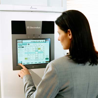 ![]() | De Zweedse firma Electrolux heeft al een slimme koelkast ontworpen. Het apparaat leest nu nog de streepjescode van de artikelen, maar zodra er elektronische etiketten op de levensmiddelen zitten, kan deze Screenfridge automatisch de houdbaarheid ervan controleren. De koelkast werkt tegelijk als kookboek, elektronische postbus, agenda en antwoordapparaat voor videoboodschappen.