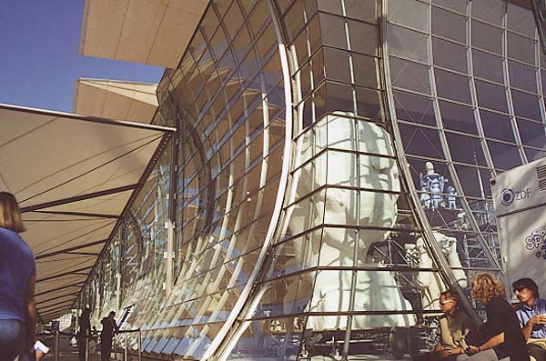 De Duitse inzending bestaat uit veel glas en metaal. Binnen zijn letterlijk kopstukken uit de Duitse geschiedenis te zien.