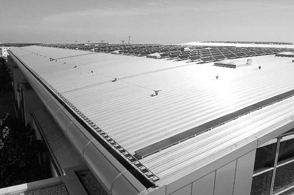 Op de daken van de beurshallen van de Münchener Messe ligt de grootste zonne-energiecentrale ter wereld.