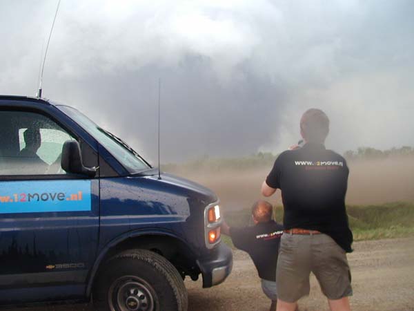 Het team van Meteo Consult in actie tijdens de tornado in Waterloo in de Amerikaanse staat Iowa.