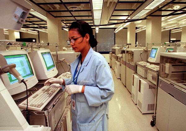 ROCKVILLE Zubeda Nuri, een van de medewerksters van Celera, aan het werk in het labaratorium in het hoofdkwartier in Rockville (VS).