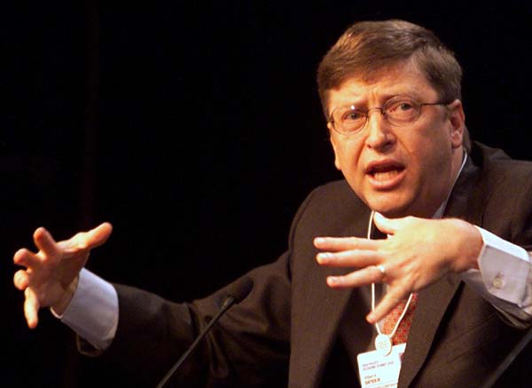| Een gedreven Gates spreekt een groep topeconomen toe tijdens het World Economic Forum in Melbourne, vorige week. De topman van Microsfot maakte een tournee door Zuidoost-Azië en Australië om daar zijn nieuwe .NET-strategie uit te leggen. We maken internet onontkoombaar.