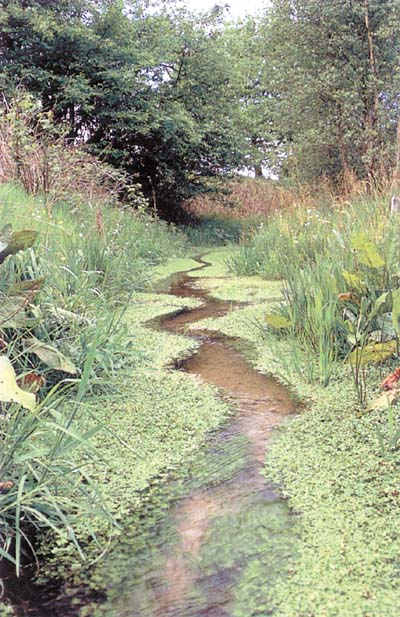Heldere, kalkarme en stromende waterlopen als op deze foto vormen een groeiplaats voor kenmerkende soorten. De Grote waterranonkel en Gewoon sterrenkroos zijn in dit soort wateren het algemeenst.