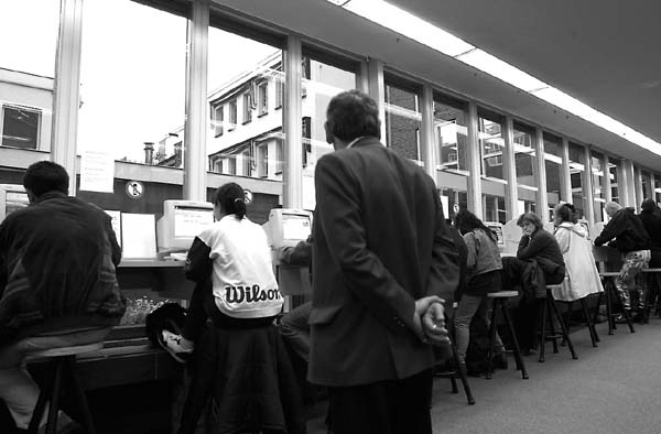 | Internet heeft een grote aantrekkingskracht. Voor de internetcomputers in de Openbare Bibliotheek in Amsterdam bestaat zo veel belangstelling dat er iedere dag een wachtlijst is. Een beveiligingsmedewerker houdt toezicht, omdat gebleken is dat vooral de jeugd regelmatig pornopagina's bezoekt. Langdurig internetten kan leiden tot verslavingsverschijnselen.