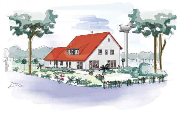 Het zichtbare deel van de Solarvision achter de nieuwe Amfibische Waddenwaterwoning van De Bruin in Buitenpost.