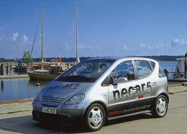 | In de strijd tegen het versterkt broeikaseffect zou het gebruik van biomassa een grote rol kunnen spelen, bepleit dr. Van Swaaij, hoogleraar procestechnologie van de Universiteit Twente. Een van de mogelijkheden is het gebruik van waterstof uit benzine als brandstof voor auto's. Uit de uitlaat van deze auto's komt alleen water en CO2. De eerste types van deze auto's rijden al rond, zoals deze Necar 4 van DaimlerChrysler, die ontwikkeld is in samenwerking met Ford, Shell en Texaco. De motor heeft een vermogen van 55 kW (75 pk), een topsnelheid van 145 kilometer per uur en een actieradius van 450 kilometer. In de toekomst is het mogelijk de benzine te vervangen door brandstoffen uit biomassa, zoals methanol, zodat netto geen CO2 geproduceerd wordt.